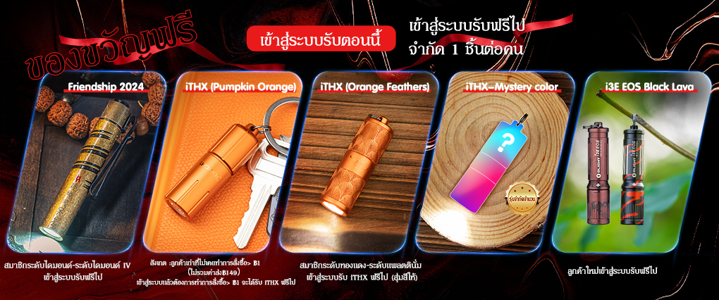 🎁iTHX เป็นของขวัญฟรีเฉพาะสมาชิกระดับทองแดง-ระดับแพลตตินั่ม สุ่มสีให้นะ (มีสี Pumpkin Orange,Orange Feathers,Wine Red,Evergreen และ สีเซอร์ไพรส์) เข้าสู่ระบบเพื่อรับฟรีไป>>