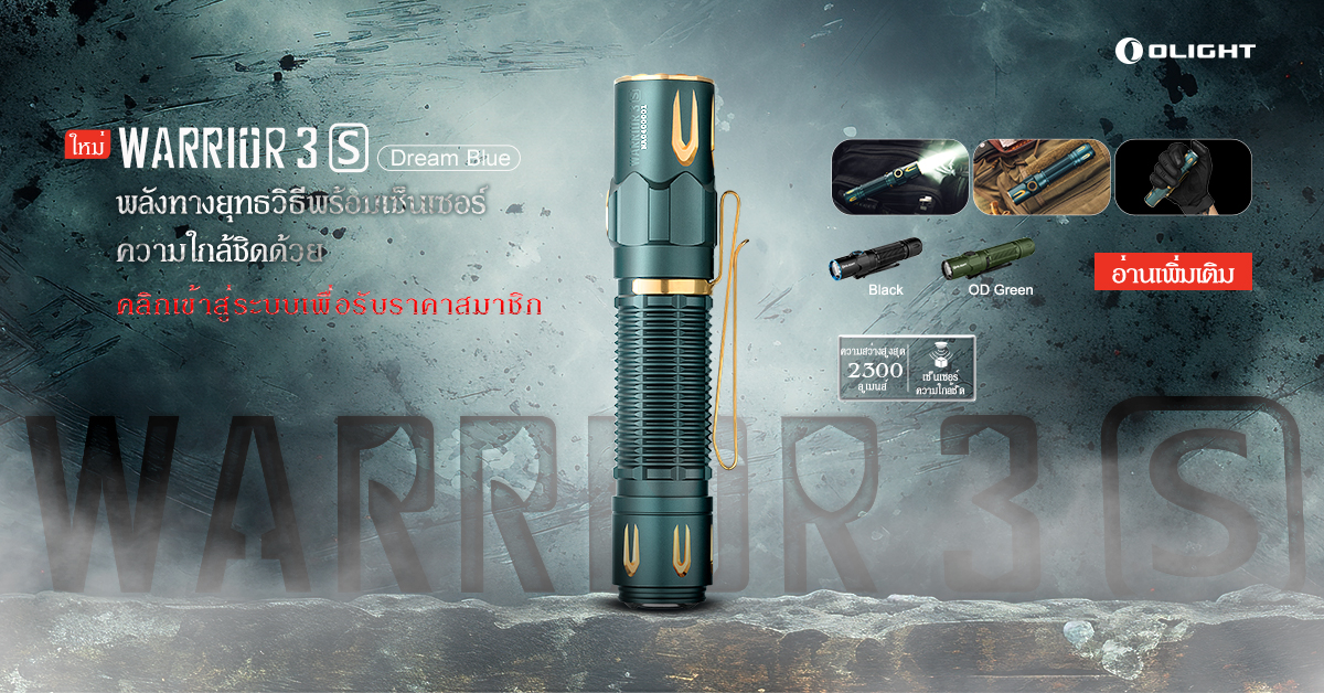 Warrior 3S (Dream Blue) เป็นสีใหม่ของซีรีส์ Warrior 3S เพื่อนที่อ่านบล็อกบ่อยๆ อาจจะเคยเห็นบทความ 'ทำไม Warrior 3S จึงเป็นไฟฉายยุทธวิธี LED ที่ดีที่สุด' ไฟฉาย Warrior 3S มี 6 โหมดแสงเพื่อตอบสนองความต้องการของคุณในสภาพแวดล้อมที่แตกต่าง ไม่ว่าจะเป็นการผจญภัยกลางแจ้ง การช่วยเหลือฉุกเฉิน หรือการใช้งานในชีวิตประจำวัน ไฟฉายยุทธวิธี Warrior 3S จะเป็นตัวเลือกในอุดมคติ มันไม่ได้เป็นเพียงตัวแทนของสีเท่านั้น แต่ยังเป็นสัญลักษณ์ทางจิตวิญญาณของการสำรวจสิ่งที่ไม่รู้จักและก้าวไปข้างหน้าอย่างกล้าหาญ