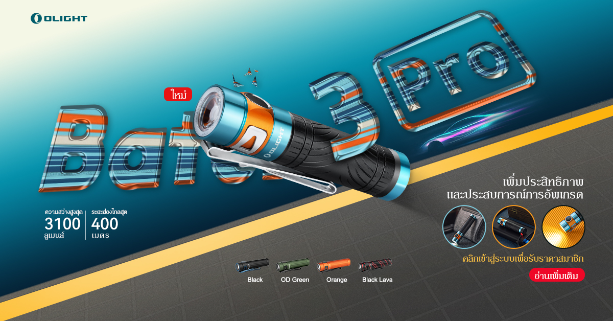 Baton 3 Pro เอาต์พุตสูงสุด 3100 ลูเมนส์ ใช้งานด้วยแบตเตอรี่ลิเธียมไอออน 18650 3200MH การชาร์จเติมได้ภายใน 3.5 ชั่วโมงโดยสายชาร์จแม่เหล็ก USB รันไทม์นานสุด 120 วัน คลิปแบบสองทางที่ยาวและกว้างขึ้น ช่วยการวางไฟฉายให้สะดวกมากขึ้นหลังจากการใช้ สามารถคลิปในกระเป๋าสะพายกระเป๋าถือเป้ได้
