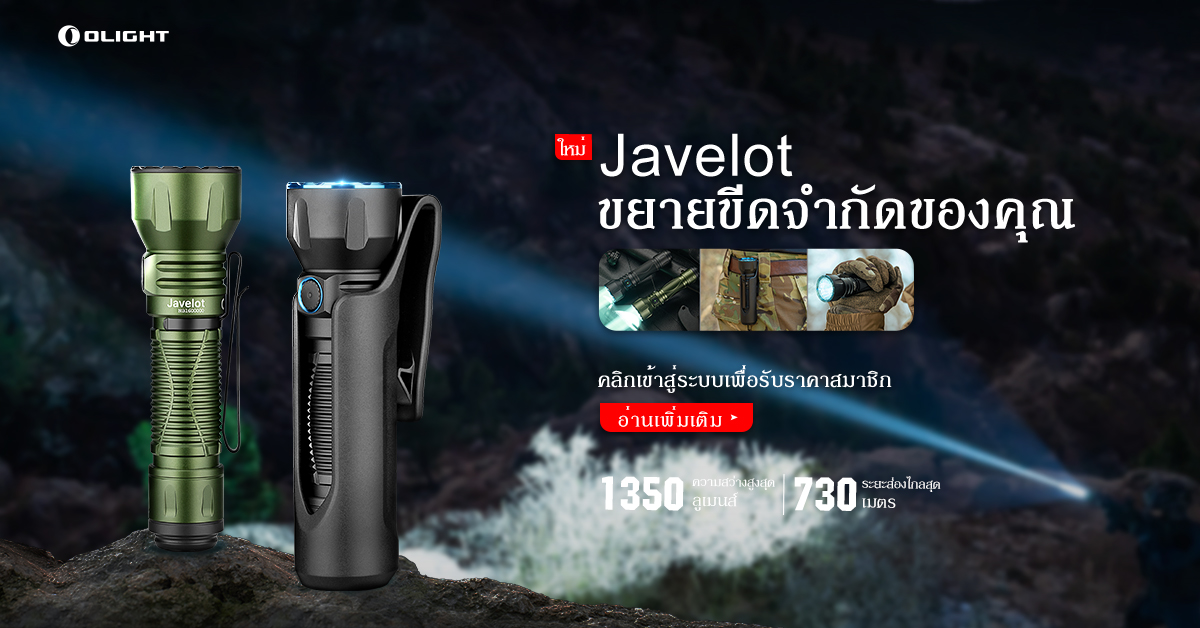 Javelot เป็นไฟฉายพกพาที่ทรงพลัง พกพา และควบคุมได้ในระยะไกล ด้วยกำลังส่องสว่างสูงสุด 1350 ลูเมน 134,000 แคนเดลา ระยะส่องสูงสุด 730 เมตร และใช้แบตเตอรี่ 5,000mAh 21700 ให้แสงสว่างในโหมดแสงจันทร์ต่อเนื่องได้นานถึง 72 วัน สวิตช์โลหะด้านข้างรองรับโหมดความสว่าง 5 ลูเมน เหมาะสำหรับการใช้งานประจำวัน นอกจากนี้ยังมีสวิตช์ยุทธวิธีใต้เครื่อง มาพร้อมซองหนัง และคลิปหนีบกระเป๋าสองทาง ให้ Javelot เป็นผู้ช่วยที่ดีในชีวิตของคุณ