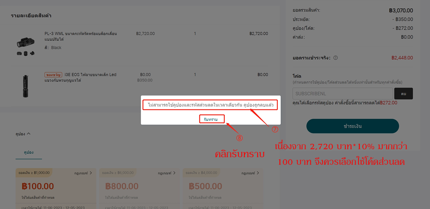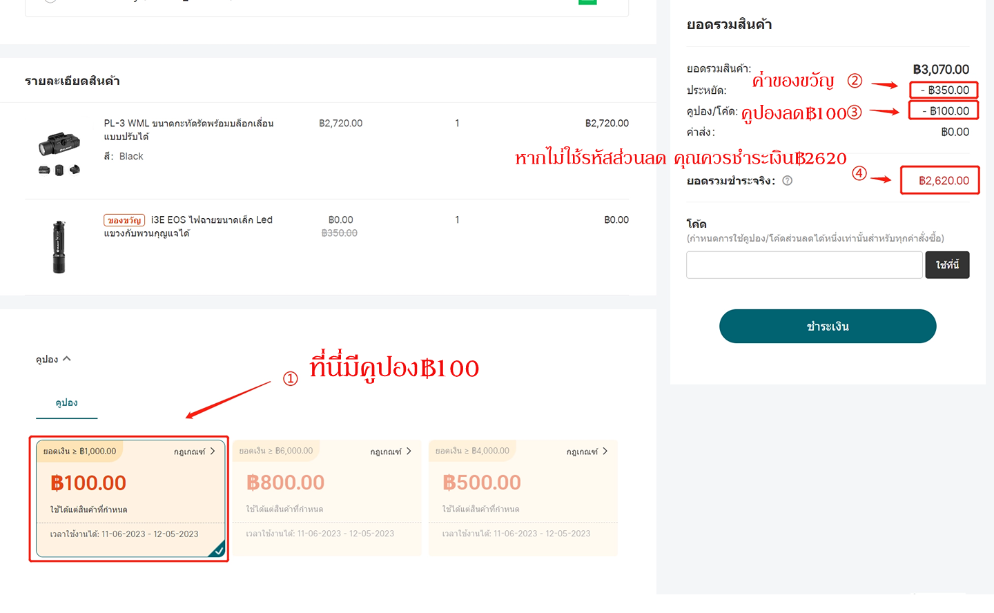*โค้ดส่วนลดนี้ใช้ได้กับสินค้าที่ยังไม่ได้ลดราคา ไม่สามารถชำระเป็นค่าขนส่งได้ และไม่สามารถใช้ร่วมกับโค้ดส่วนลดอื่นๆ)