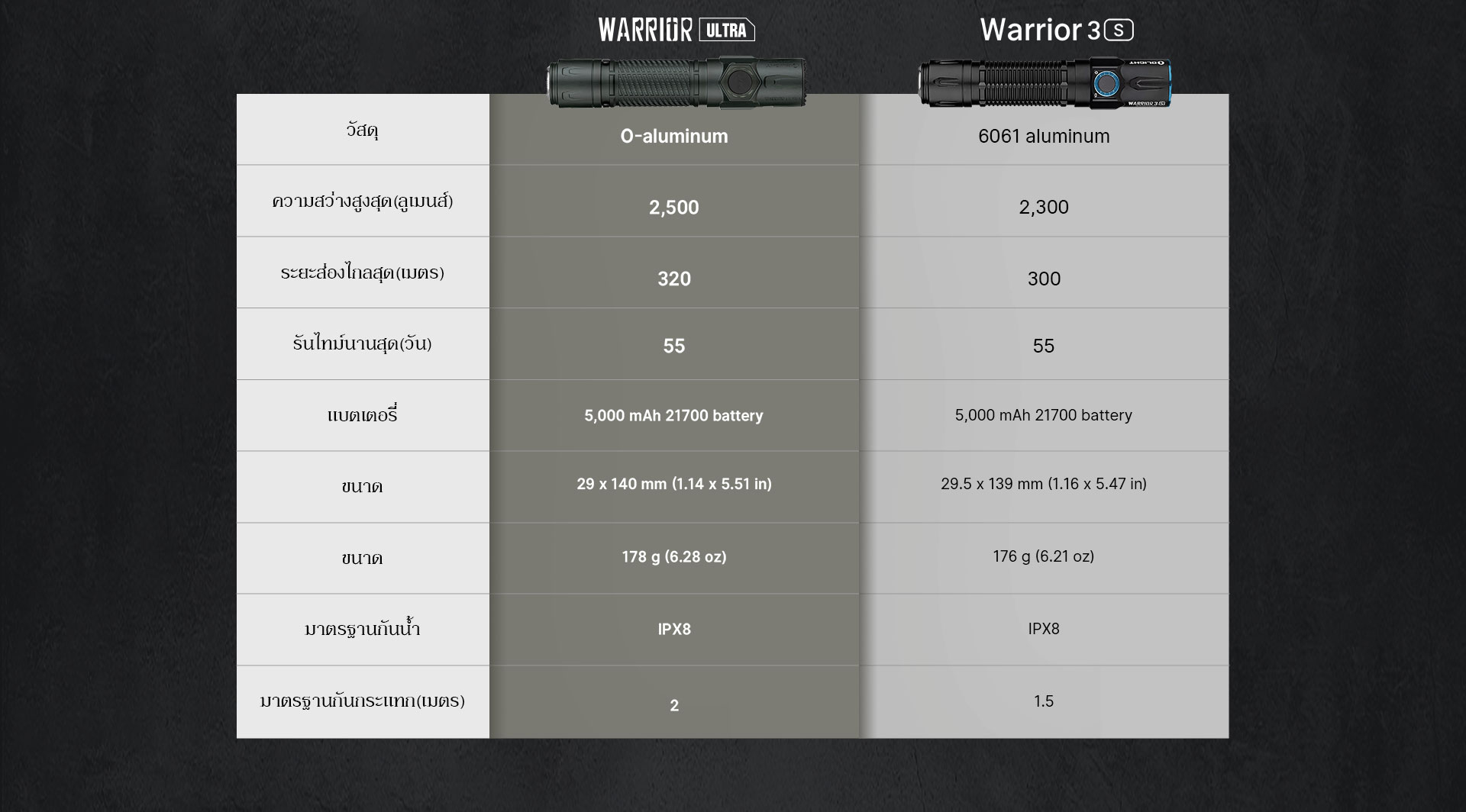 สำหรับนักผจญภัยและผู้ปฏิบัติงานอย่างมืออาชีพ อุปกรณ์ที่ใช้งานได้หลากหลายและไว้ใจได้คือหัวใจสำคัญ และ Warrior Ultra คือคำตอบ ด้วยการผสานพลังแสงที่ทรงพลังเข้ากับดีไซน์ที่แข็งแกร่ง ทำให้เหมาะทั้งสำหรับผู้ใช้ทั่วไป นักเดินป่า และเจ้าหน้าที่กู้ภัย