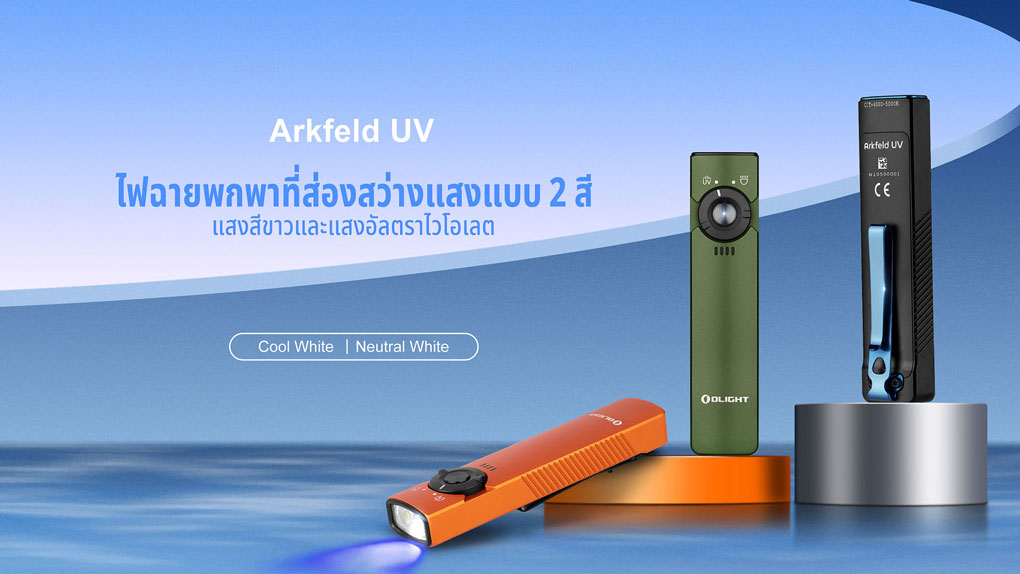 1.Arkfeld UV เป็นไฟฉายรุ่นแรกที่มีแสงสีขาวและแสง UV ของ Olight Thailand