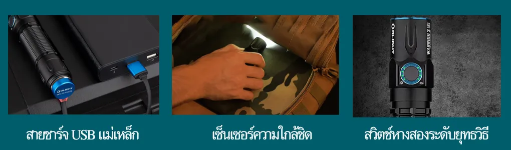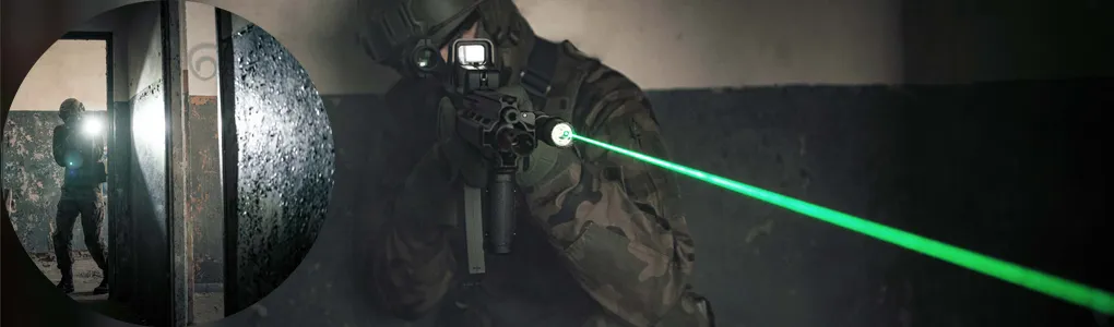 รุ่นนี้สลับ 3 โหมดได้ง่าย เลเซอร์สีเขียว เลเซอร์สีเขียว+แสงสีขาว แสงสีขาว เอาต์พุต 1,000 ลูเมนส์ ระยะส่องไกล 180 เมตร ติดด้วยราง Picatinny การชาร์จด้วยแม่เหล็กสะดวกมาก
