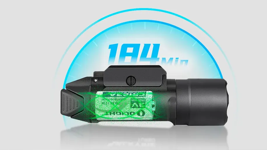 【Valkyrie Turbo】ได้ใช้แหล่งกำเนิดแสงเลเซอร์สีขาว LEP การออกแบบพิเศษสำหรับเครื่องอุปกรณ์ยุทธวิธีสั้น ความเข้มของแสงสูงถึง 70,225cd ระยะส่องไกลสุด 350 เมตร