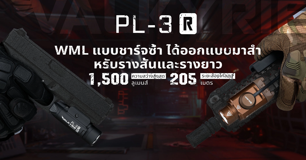 เพื่อตอบสนองความต้องการของผู้ใช้สำหรับไฟฉายยุทธวิธีแบบชาร์จไฟได้ Olight ได้เปิดตัว PL-3R เวอร์ชันชาร์จไฟได้ในเดือนเมษายน ปี 2566 PL-3R ชาร์จด้วยการชาร์จแม่เหล็กแบบ USB และมีฟังก์ชันฟลัดไลท์ที่ทรงพลังเช่นเดียวกับรุ่นก่อน ดังนั้นคุณจึงไม่ต้องกังวลเรื่องการเปลี่ยนแบตเตอรี่ เหมาะสำหรับปืนสั้นและปืนยาว ไฟติดปืนนี้มีสองโหมดแสงโดยมีตัวเลือกความสว่าง 1,500 หรือ 1,000 ลูเมน เพื่อปรับแต่งให้เหมาะกับภารกิจของคุณ ให้ความสว่างสูงถึง 1,500 ลูเมน และระยะลำแสง 205 เมตร คุณยังสามารถใช้สวิตช์อัจฉริยะเพื่อเปลี่ยนไฟเป็น 300 ลูเมนหรือโหมดแฟลชได้ ขึ้นอยู่กับความต้องการของคุณ PL-3 เป็นที่รู้จักในด้านโครงสร้างที่ทนทาน สามารถทนต่อแรงหดตัวได้สูงถึง 50 จูล โดยจะสนับสนุนระหว่างการยิงอย่างต่อเนื่อง กลไกการล็อคด้วยสกรูที่ปลอดภัยช่วยให้มั่นใจได้และลดการเคลื่อนไหวระหว่างการยิงที่รวดเร็ว ใช้งานได้กับสวิตช์รีโมทระยะไกลแบบแม่เหล็กที่เป็นอุปกรณ์เสริม (sRPL-7) สำหรับปืนขนาดกลางและยาว
