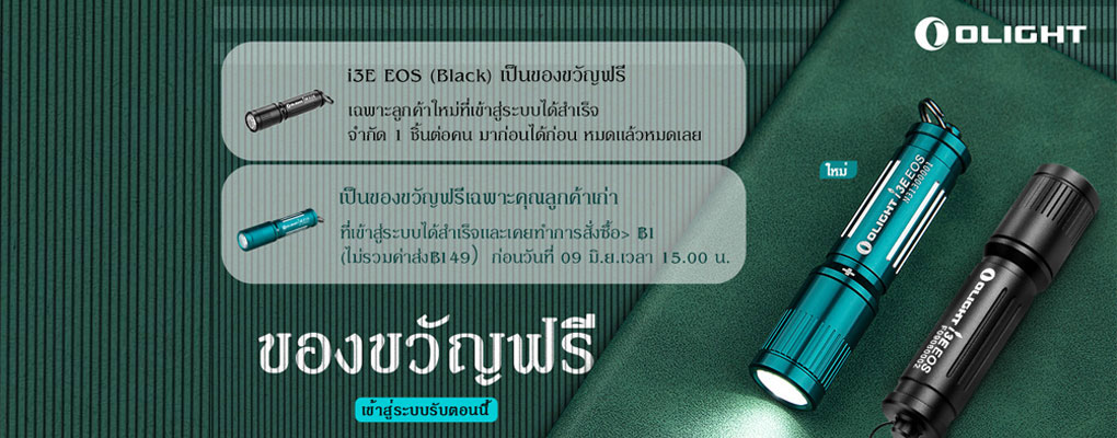 ลูกค้าเก่า: เข้าสู่ระบบเพื่อรับไฟฉาย i3E olight blue ฟรี