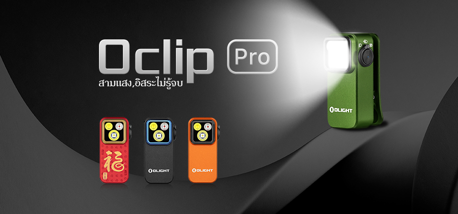 💡 ไฟฉายคลิป 3-in-1 ตัวแรกจาก Olight! แตกต่างจากไฟฉายทำงานหรือไฟคาดหัวทั่วไป Oclip Pro รวม 3 โหมดแสง (ไฟกว้าง, ไฟพุ่ง, และไฟแดงคู่) ไว้ในตัวเดียว พร้อมตัวเครื่องอะลูมิเนียมที่ทนทาน ไม่ว่าคุณต้องการแสงไฟกระจายกว้าง แสงพุ่งไกล หรือไฟสีแดงเพื่อความปลอดภัยในเวลากลางคืน Oclip Pro จัดให้ได้ทั้งหมด!