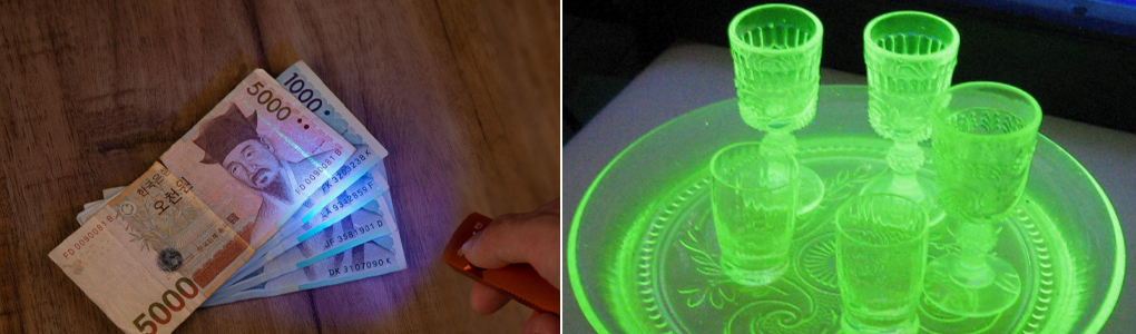 จากปลายทศวรรษ 1800 ถึง 1920 มีแก้วที่เรียกว่าแก้วยูเรเนียมที่นิยมมากในหมู่นักสะสมของเก่า แก้วเหล่านี้จะส่องสว่างและช่วยให้ตรวจสอบว่าเป็นของแท้หรือเปล่า