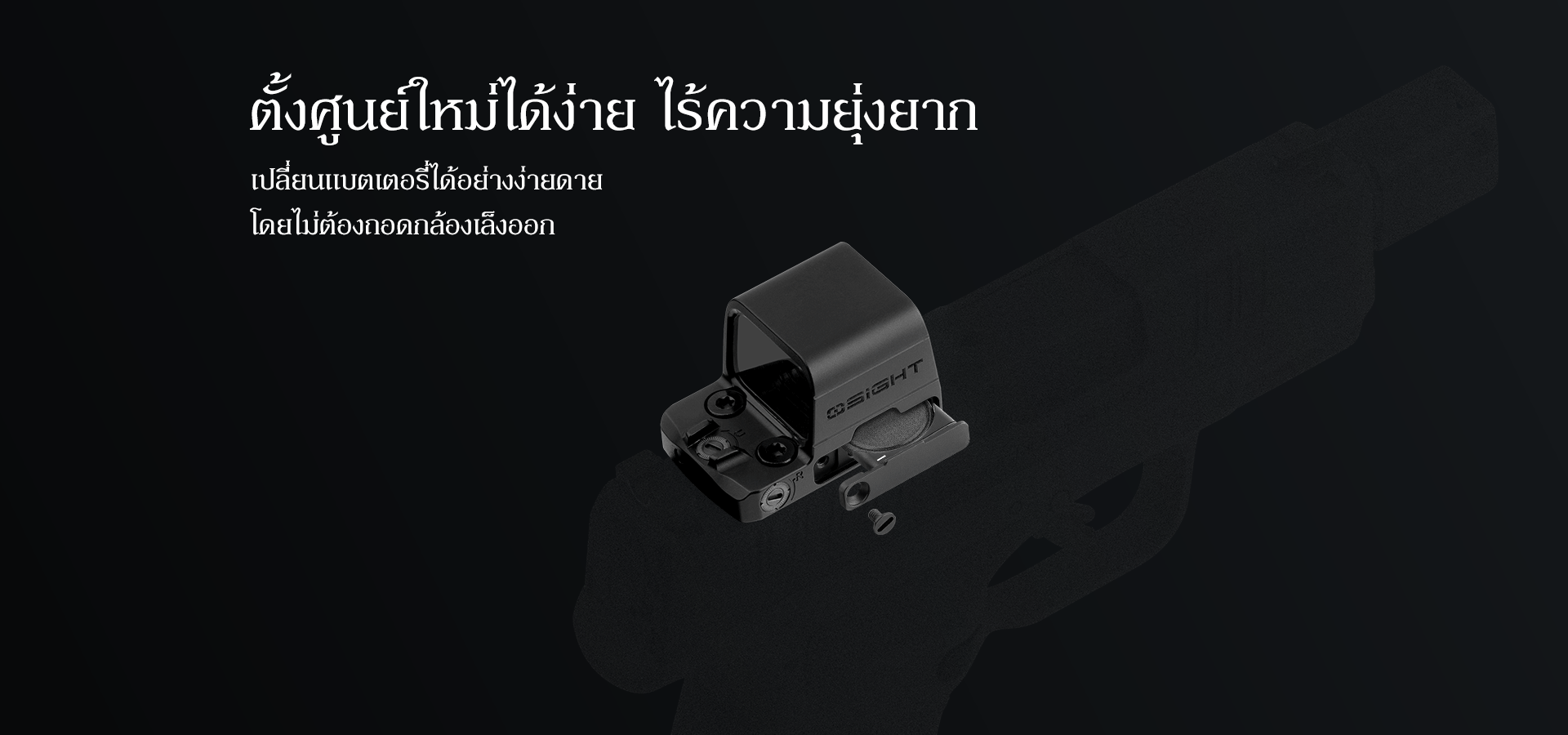 การเปลี่ยนแบตเตอรี่ไม่ควรทำให้คุณต้องตั้งศูนย์เล็งใหม่ ด้วยแบตเตอรี่ CR1620 ที่โหลดจากด้านข้าง คุณสามารถเปลี่ยนพลังงานได้อย่างง่ายดายโดยไม่เสียศูนย์เล็ง พร้อมไฟแสดงระดับพลังงานต่ำที่ช่วยให้คุณไม่พลาดในยามจำเป็น