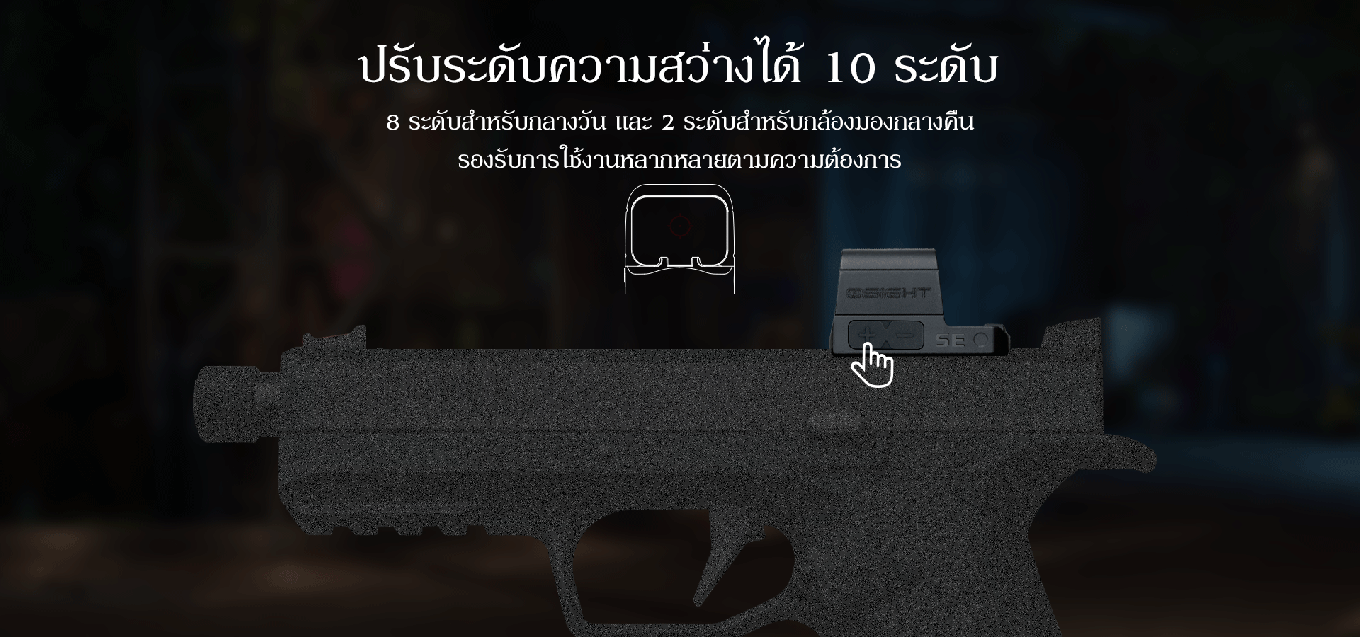 จากกลางวันจ้าไปจนถึงความมืดสนิท Osight SE มีให้เลือก 8 ระดับความสว่างสำหรับกลางวัน และอีก 2 ระดับสำหรับใช้งานร่วมกับกล้องมองกลางคืน