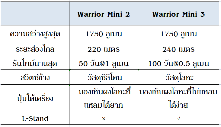 #การเปรียบเทียบขนาด: Warrior Mini 3 มีขนาดเล็กกว่า Warrior Mini 2 อย่างเห็นได้ชัด (ใกล้เคียงกับ Warrior Mini)
